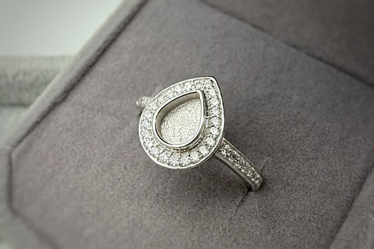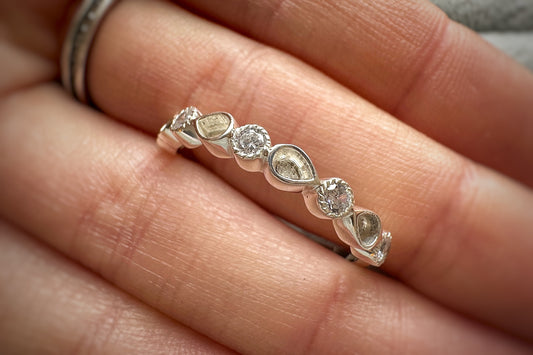 Silver Pear Crimped Edge Crystal Band Ring Size X 1/2