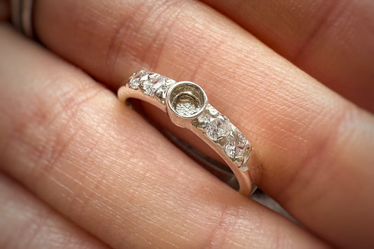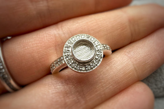 Silver Round Stone Crystal Band Ring Size N 1/2