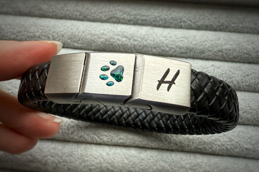 Brushed Stainless Steel Men’s Paw Print Leather Bracelet
