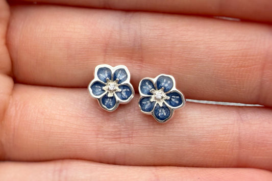 925 Silver Forget-Me-Not Stud Memorial Earrings