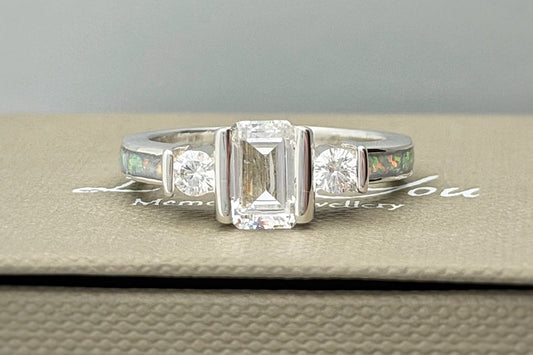 925 Silver Trio Emerald Solitaire Ring