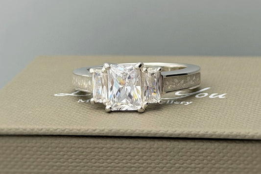 925 Silver Emerald Cut Solitaire Ring