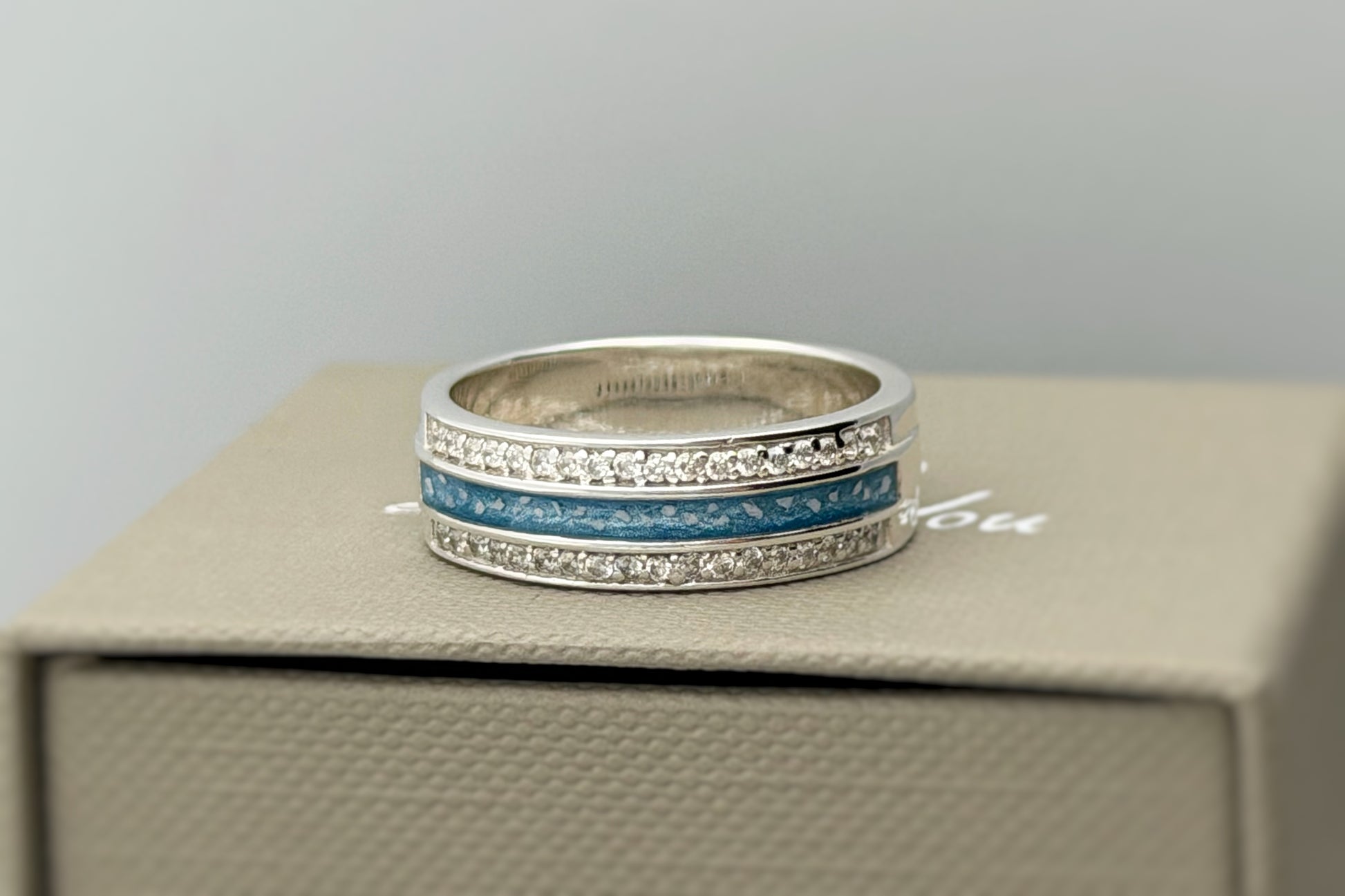 This piece can be laser engraved on the inner band, with a maximum of 8 characters (including spaces).
