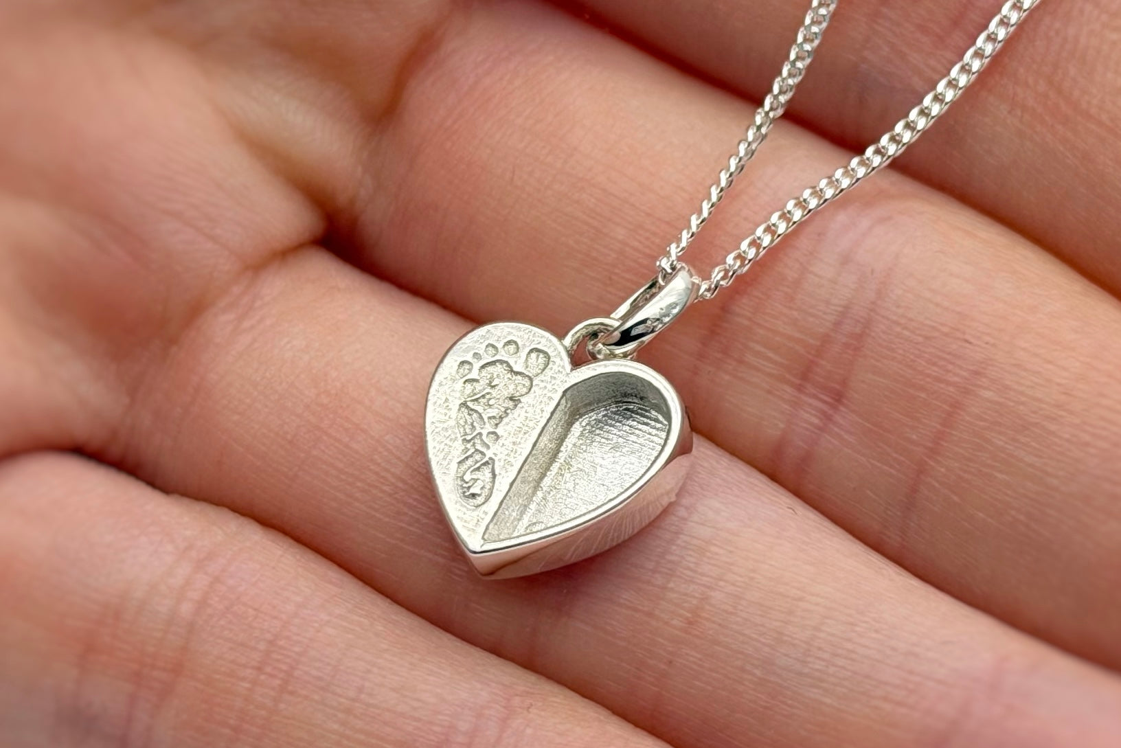925 Silver Baby Loss Footprint Split Heart Pendant