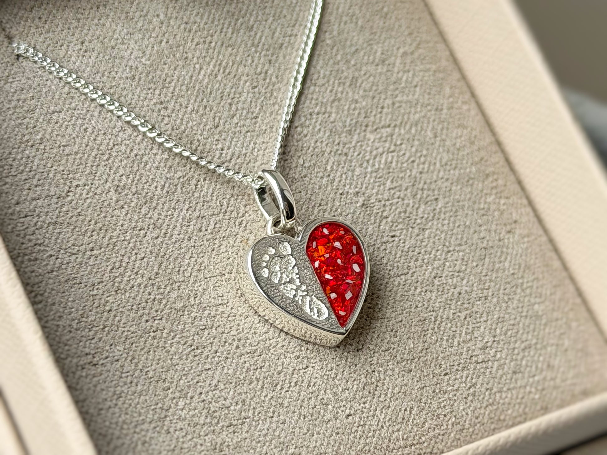 Stone sits in the right hand side of the heart and can be any colour. Can contain ashes, hair or breastmilk etc