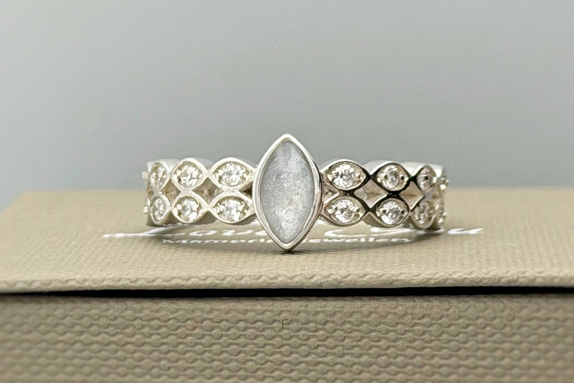 The marquise shaped memorial stone can be any colour and can hold ashes, hair, fur or breastmilk