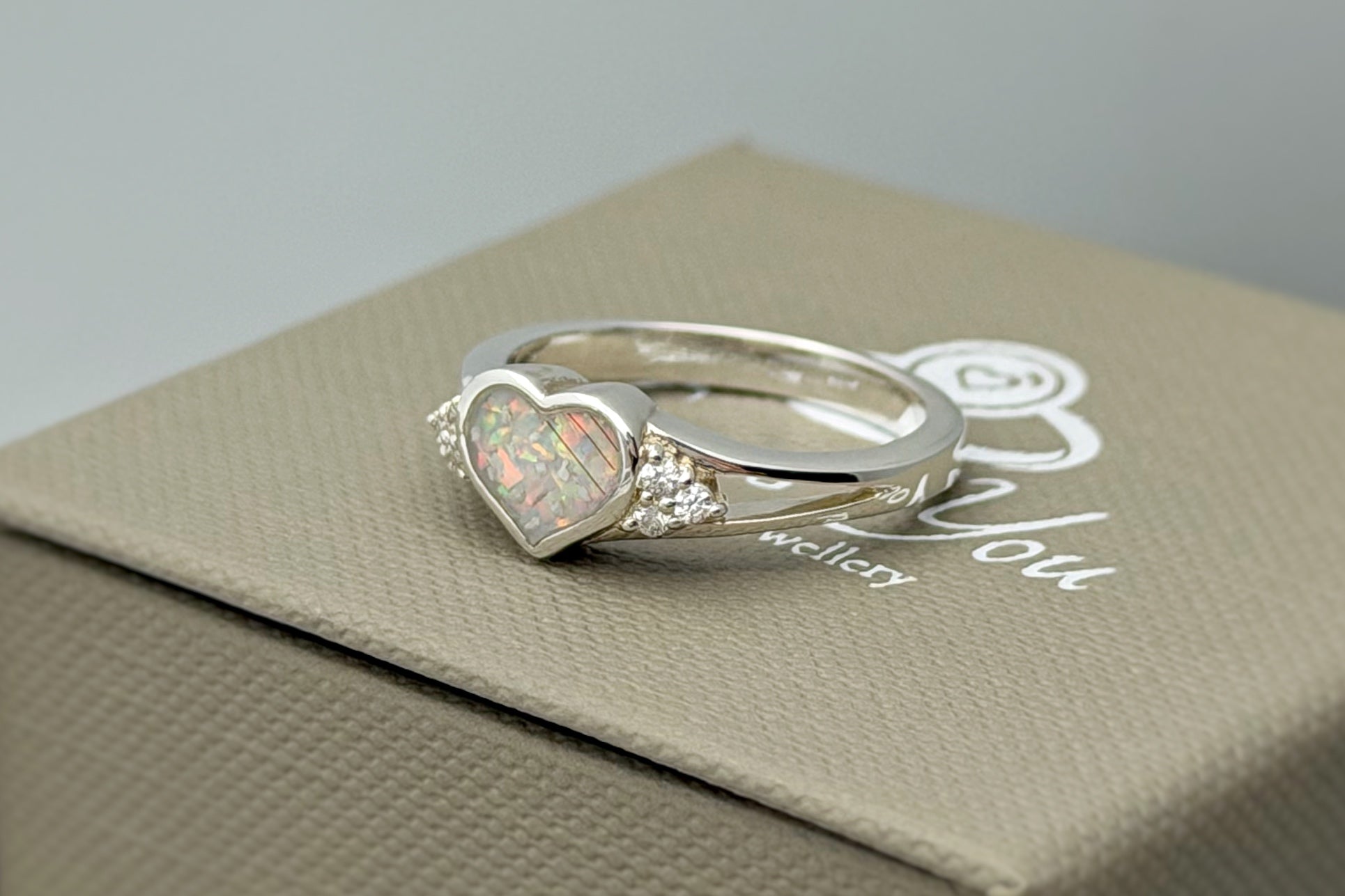 925 Silver Heart Crystal Cluster Ring