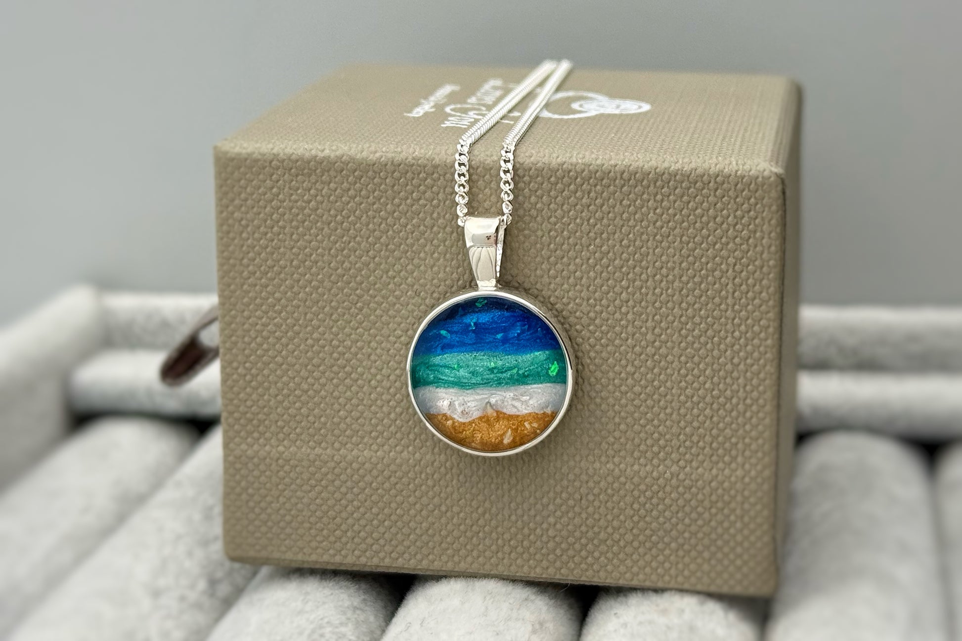 NOTE - Each beach scene created will be slightly different to the last, as these are handmade to order. The same colours will be used but they will look different each time, for example more ‘sand’, different shade depths, less white foam etc.