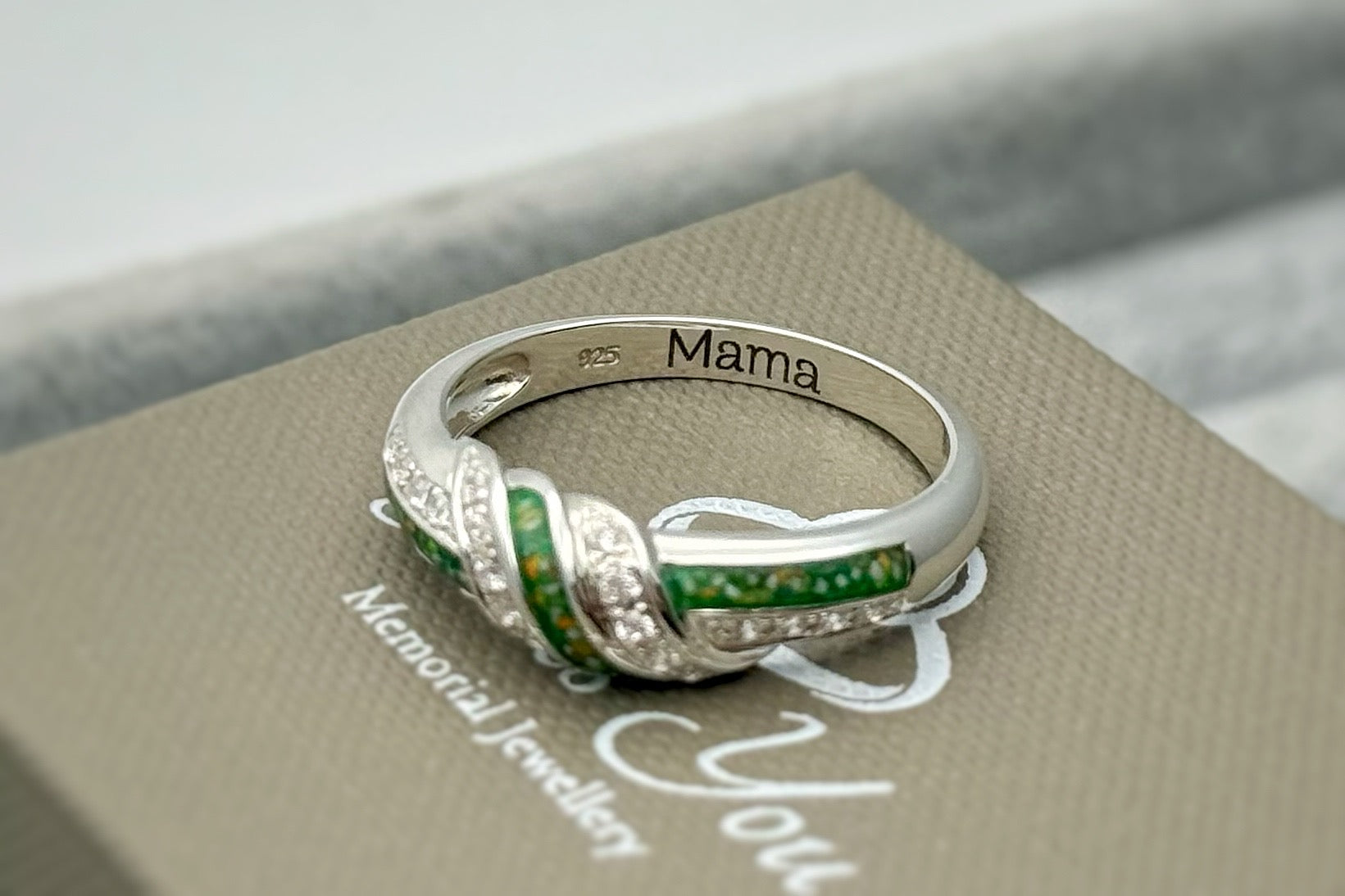 Made from 925 sterling silver with a twist design front and three separate memorial stones - 1 each in the shoulders and 1 in the centre of the twist.