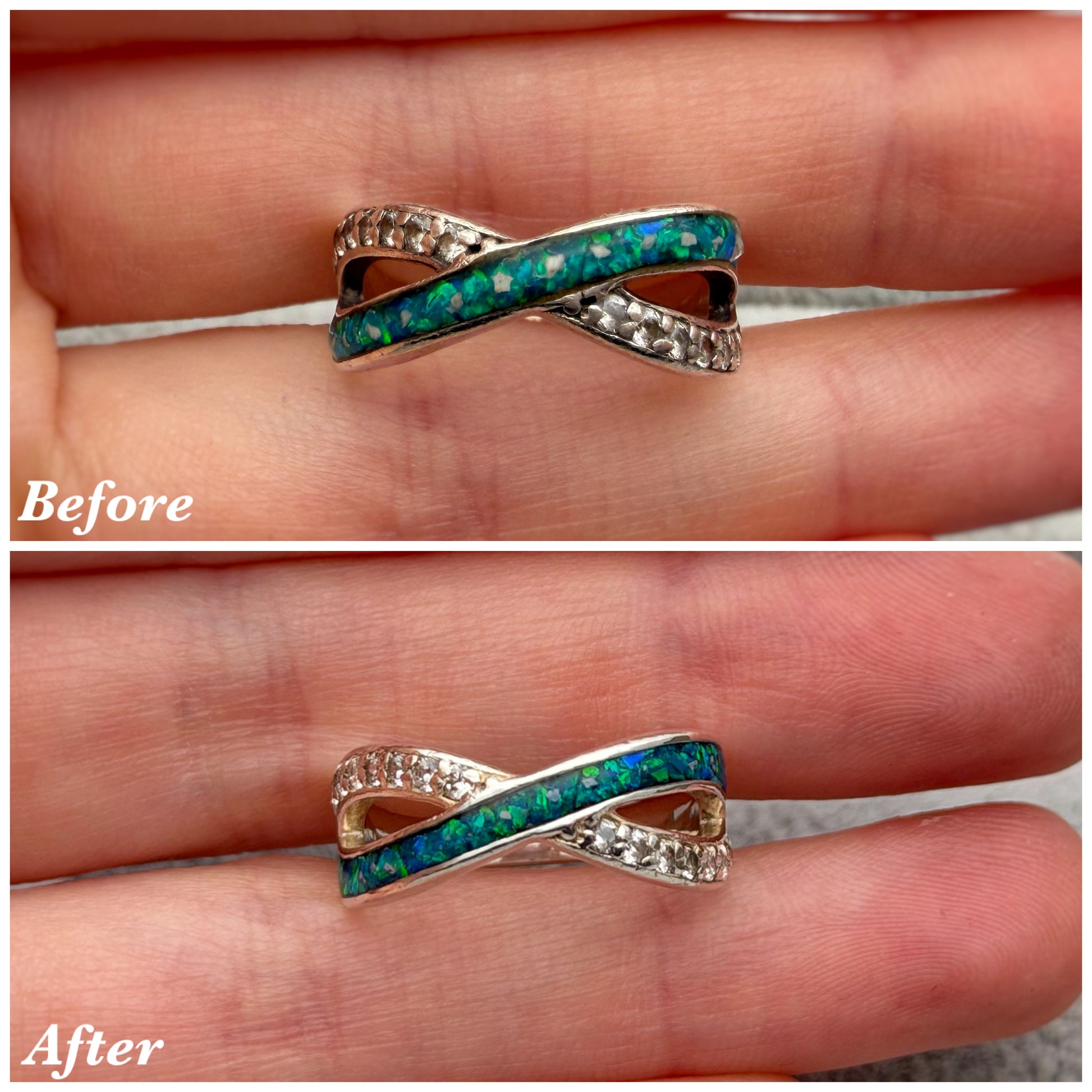 This includes the piece being sonic cleaned, silver cleaner applied and then highly polished plus the resin stone being re-coated to remove slight scratches and any discolouration. Price includes postage back to you once complete.