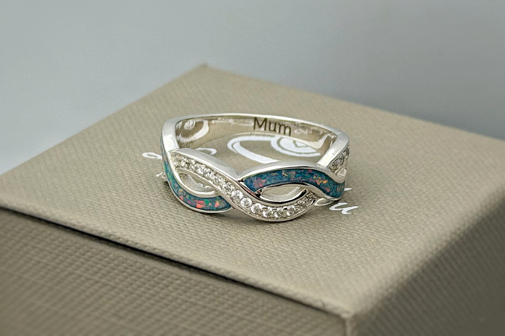 This piece can be laser engraved on the inner band, with a maximum of 8 characters (including spaces).