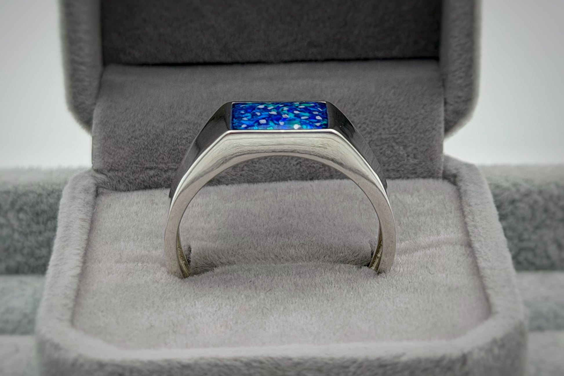 This piece can be laser engraved on the inner band, with a maximum of 8 characters (including spaces).