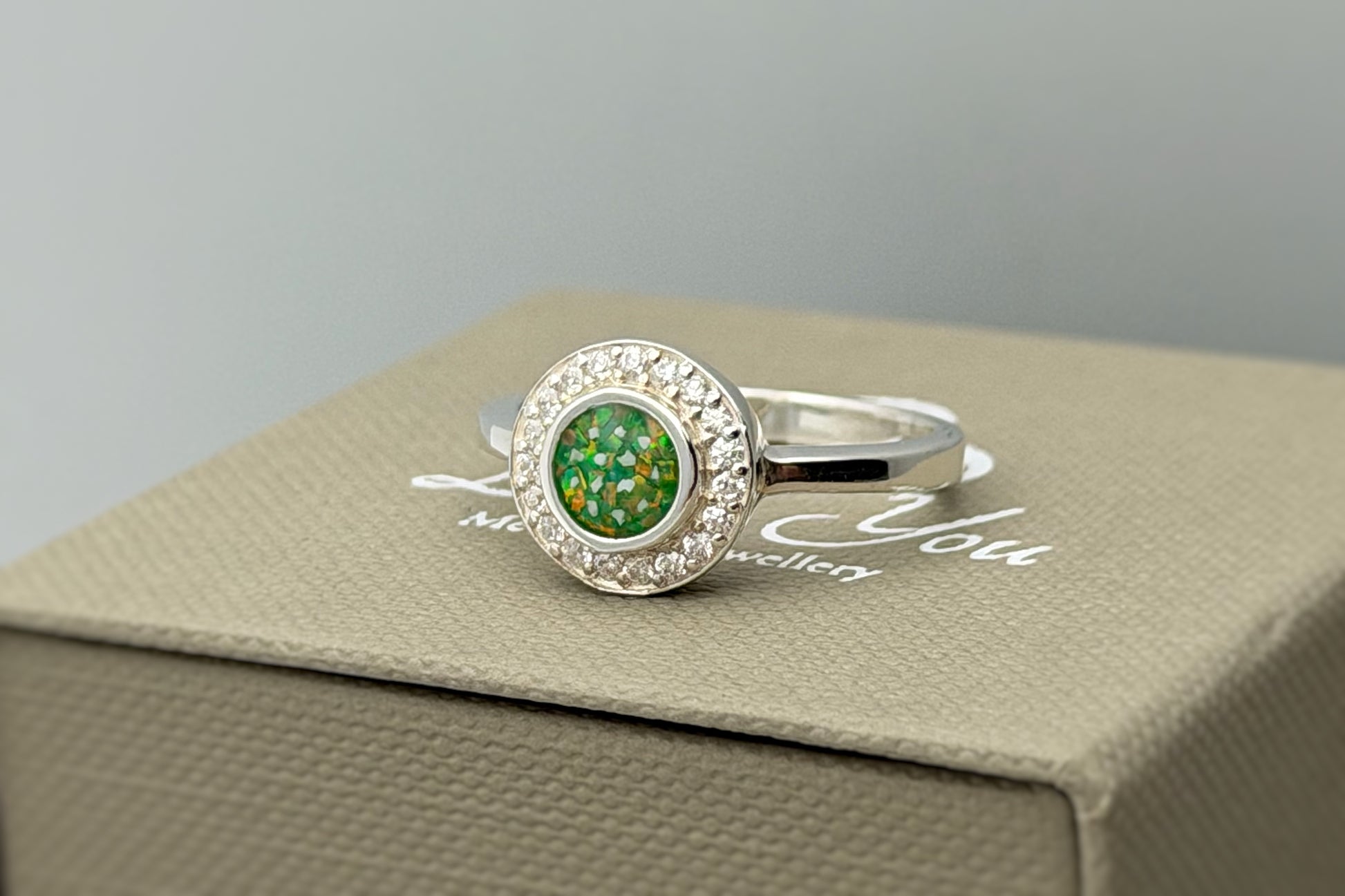 We use a high powered infrared laser engraving machine to engrave our jewellery. It leaves a ‘patina’, which makes the engraving appear darker. This colour will slightly fade through normal wear and polishing.