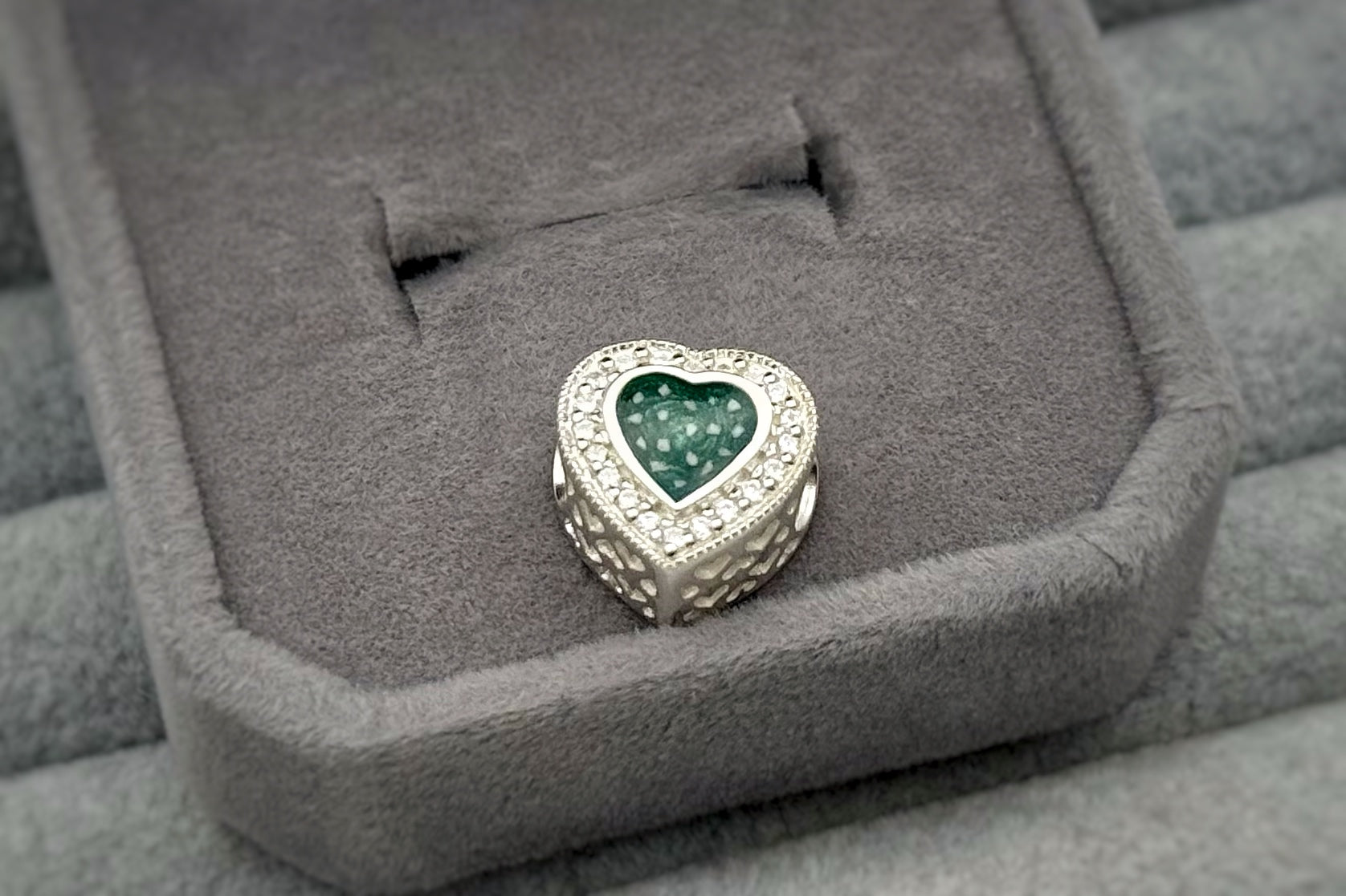 Heart Filigree Crystal Memorial Charm
