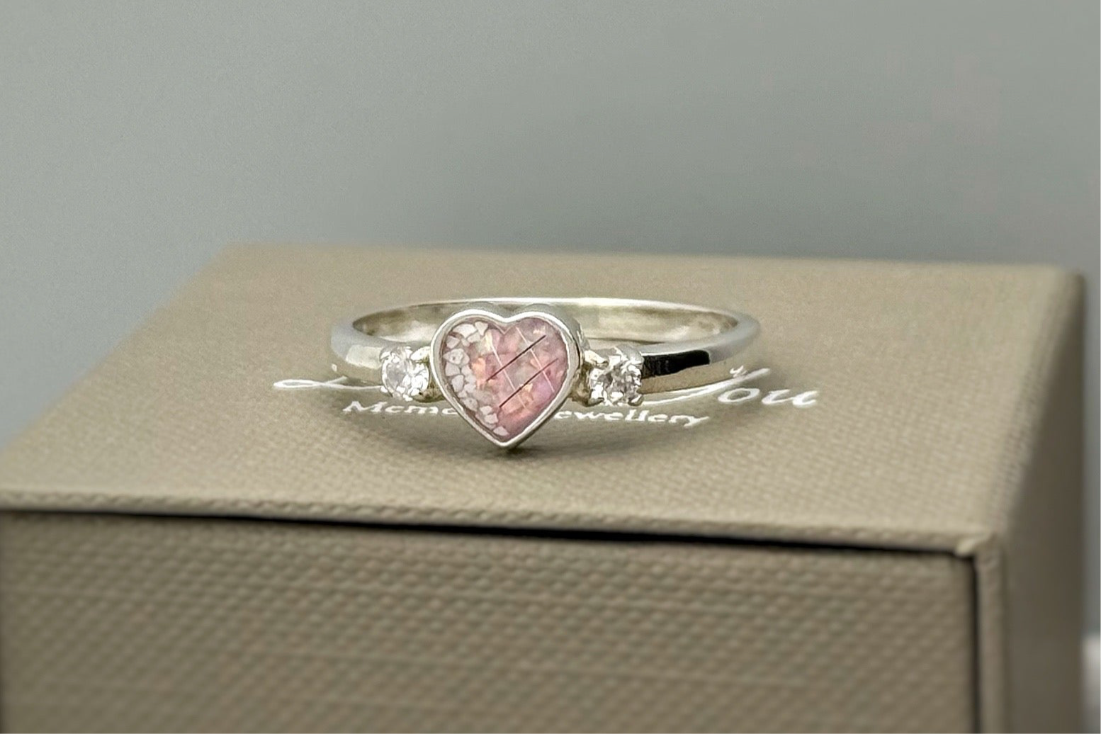 The heart stone can be any colour and can hold ashes, hair, fur or breastmilk