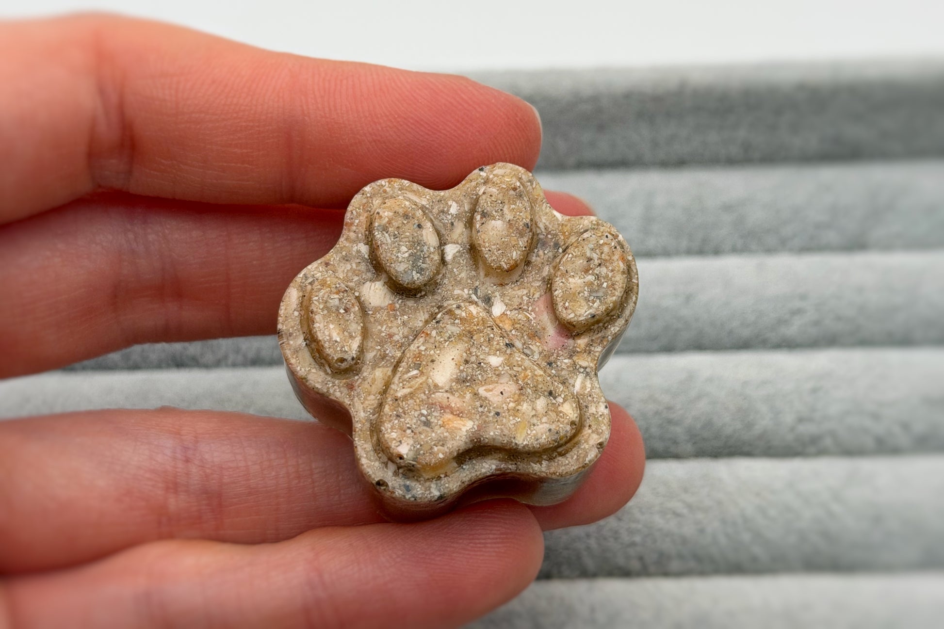 A paw shape keepsake made purely from ashes and resin to display ornamentally or keep with you.