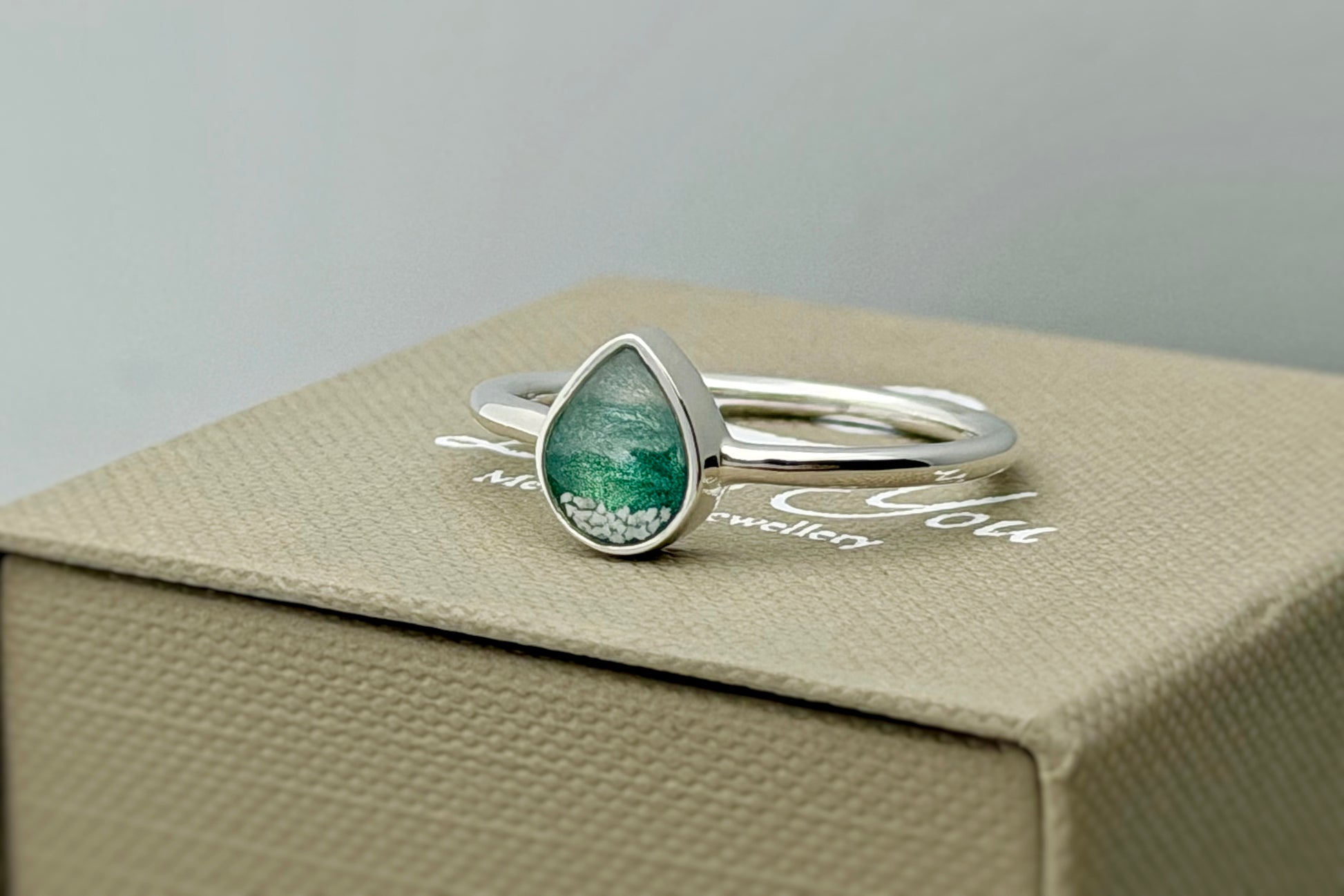 The stone can be any colour and can hold ashes, hair, fur or breastmilk